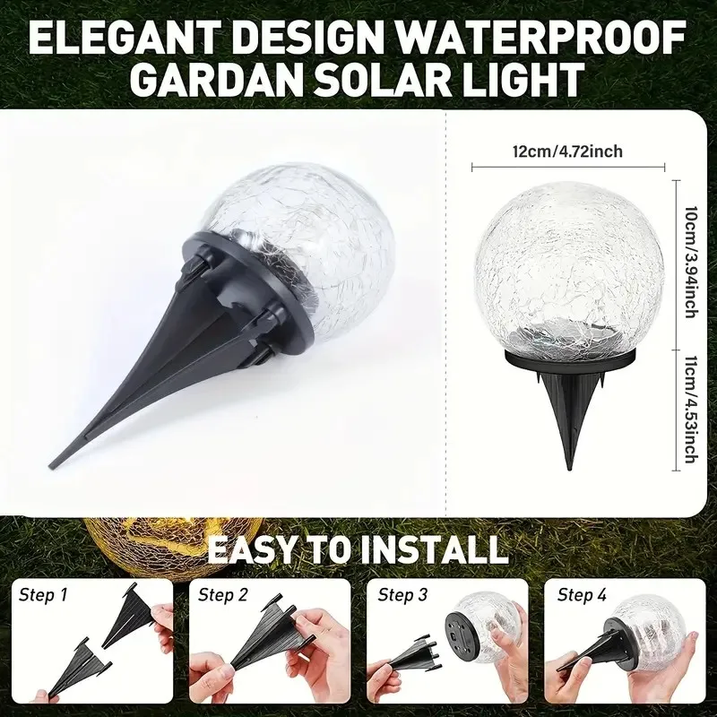 1-4 Packs Solar LED Light Cracked Glass Ball for Garden Outdoor Path for Patio and Yard Lawn Backyard Festival Decoration Lamp